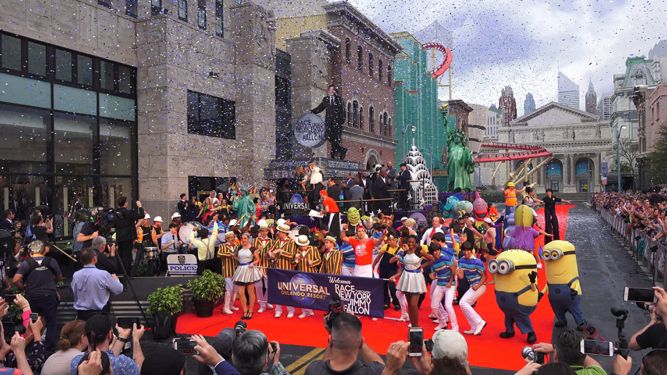 The Tonight Show has been filming on property at Universal Orlando Resort to celebrate the grand opening of Race Through New York Starring Jimmy Fallon with celebrity guests like Shaquille O’Neal, Vin Diesel, Blake Shelton, and Dwayne Johnson. Fallon is also featured on the Studio Tram Tour at Universal Studios Hollywood.