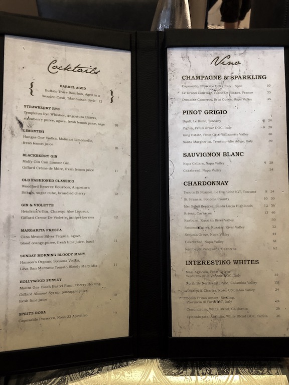 The restaurant has a full service bar and a fair variety of wines. We decided to try a couple drinks from the Italian-inspired signature cocktails menu. I tried the Margarita Fresca, which is Casa Mexico Silver Tequila, agave, blood orange puree, fresh lime, and basil. Our server was right, it was amazing and not sweet like I thought it would be. It had a pleasant taste of tequila with hints of basil and tartness from the blood orange. Unfortunately, be prepared for the elimination of cocktail straws at this location. This plan will be rolling throughout the Universal Studios property in the near future. Our server mentioned that they might be getting paper straws, which will be request only.
